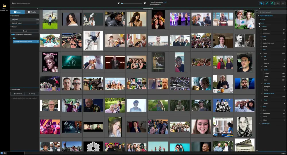 Make categories of the pictures to contact a specific category of  people, so here is Software that uses AI to do that, so you can  filter and group images by Gender, Age, Person, and many others. Here are some more categories When click on a image will detetect lots of things about persons  An image can be used to find another similar person in the entire library Roland Tricks