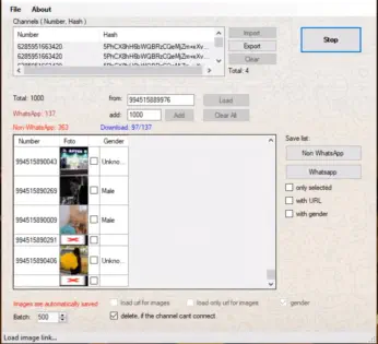 WhatsApp Contact Filter and Profile Picture Download Software based on Hash Channels,